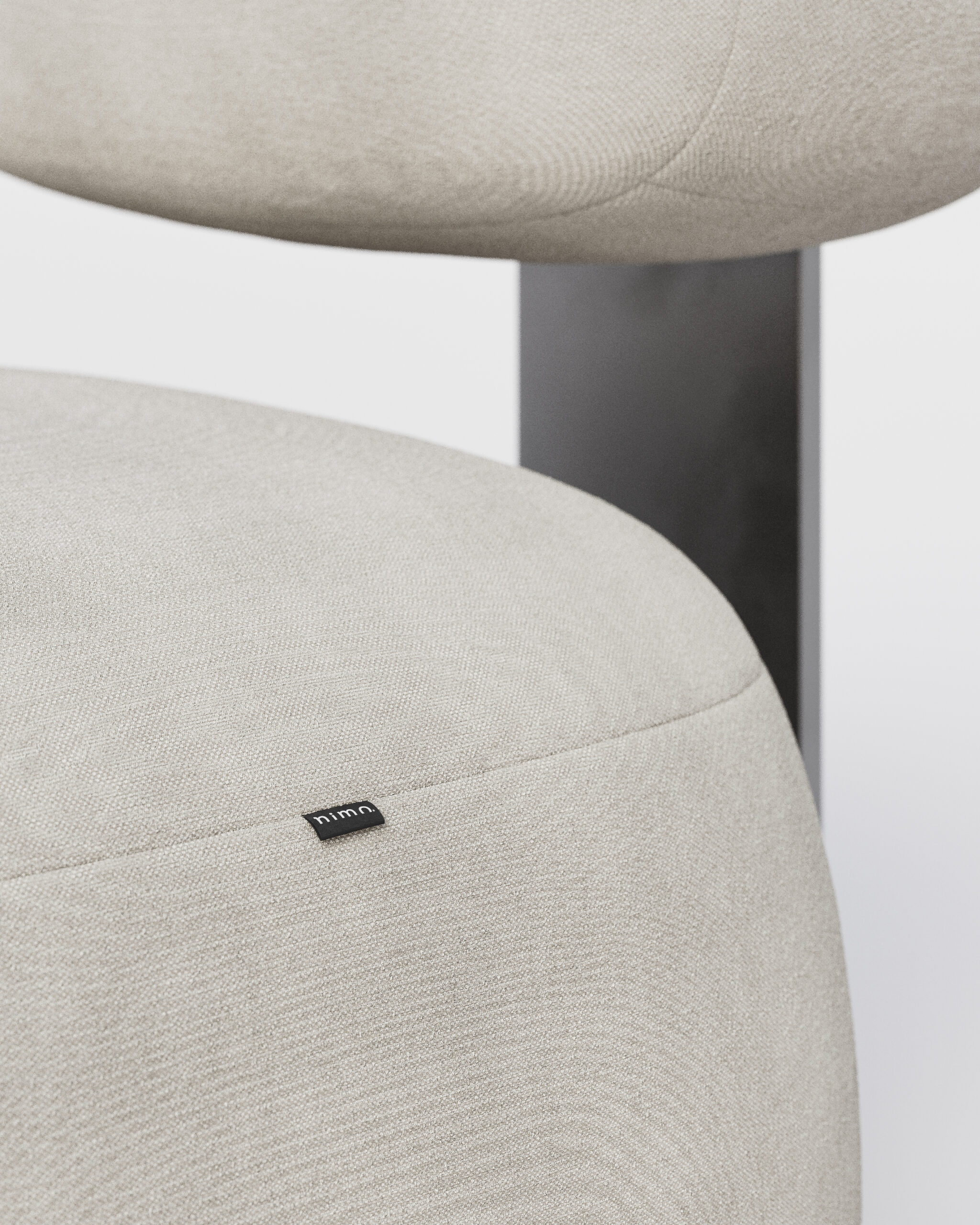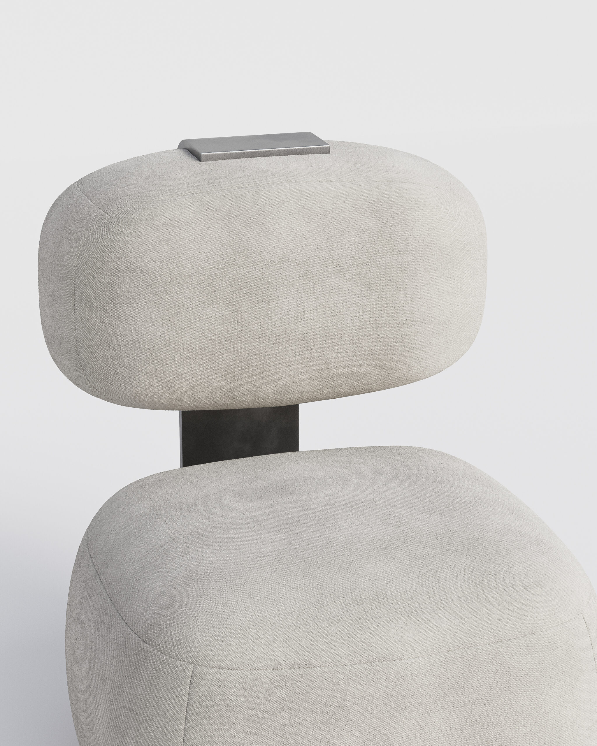 La suavidad de la espuma de alta densidad contrasta con la precisión del metal, creando una tensión honesta entre confort y firmeza, entre cuerpo y estructura. La tela anti fluido refuerza su carácter funcional, pensada para habitar el uso cotidiano sin renunciar a la estética.