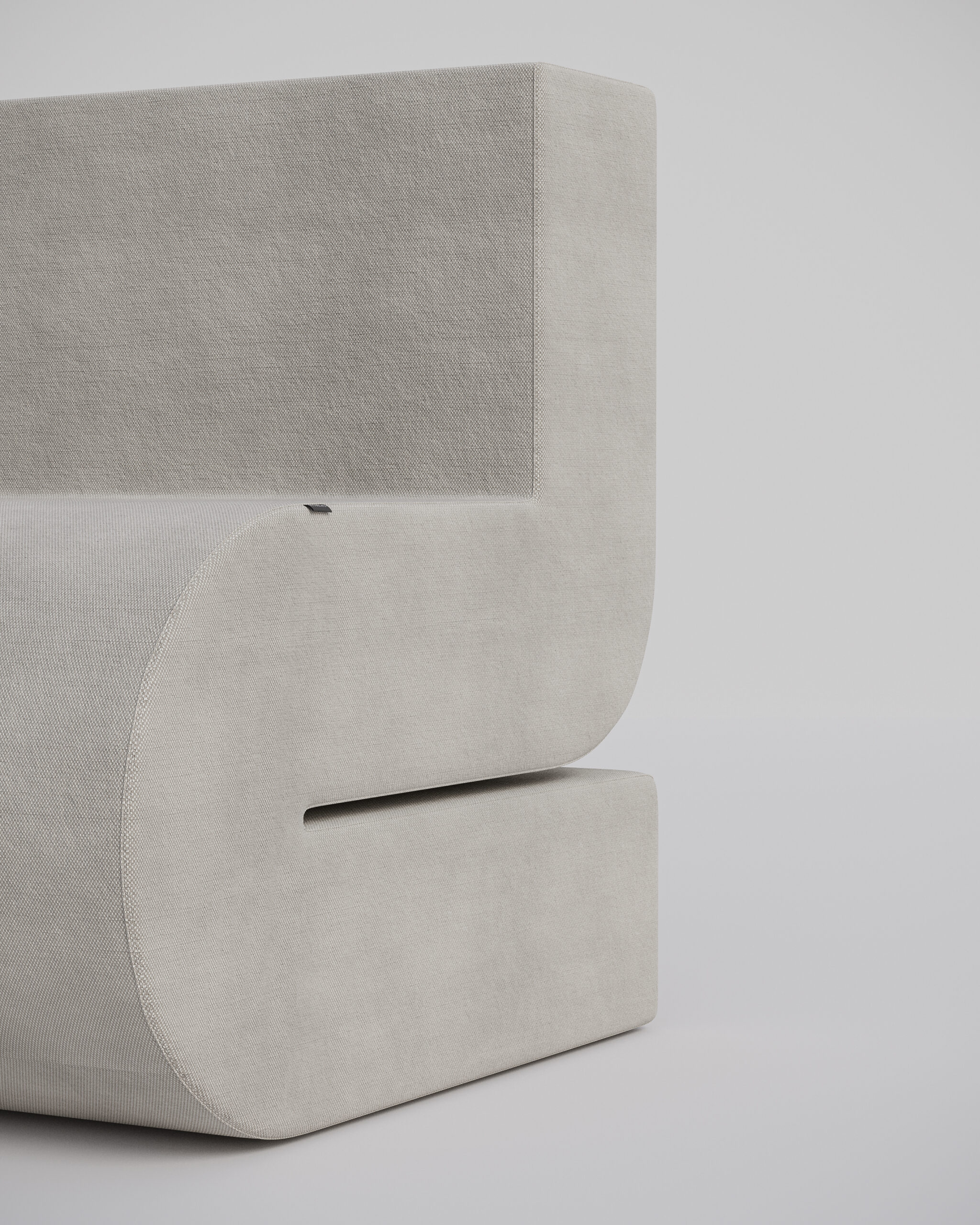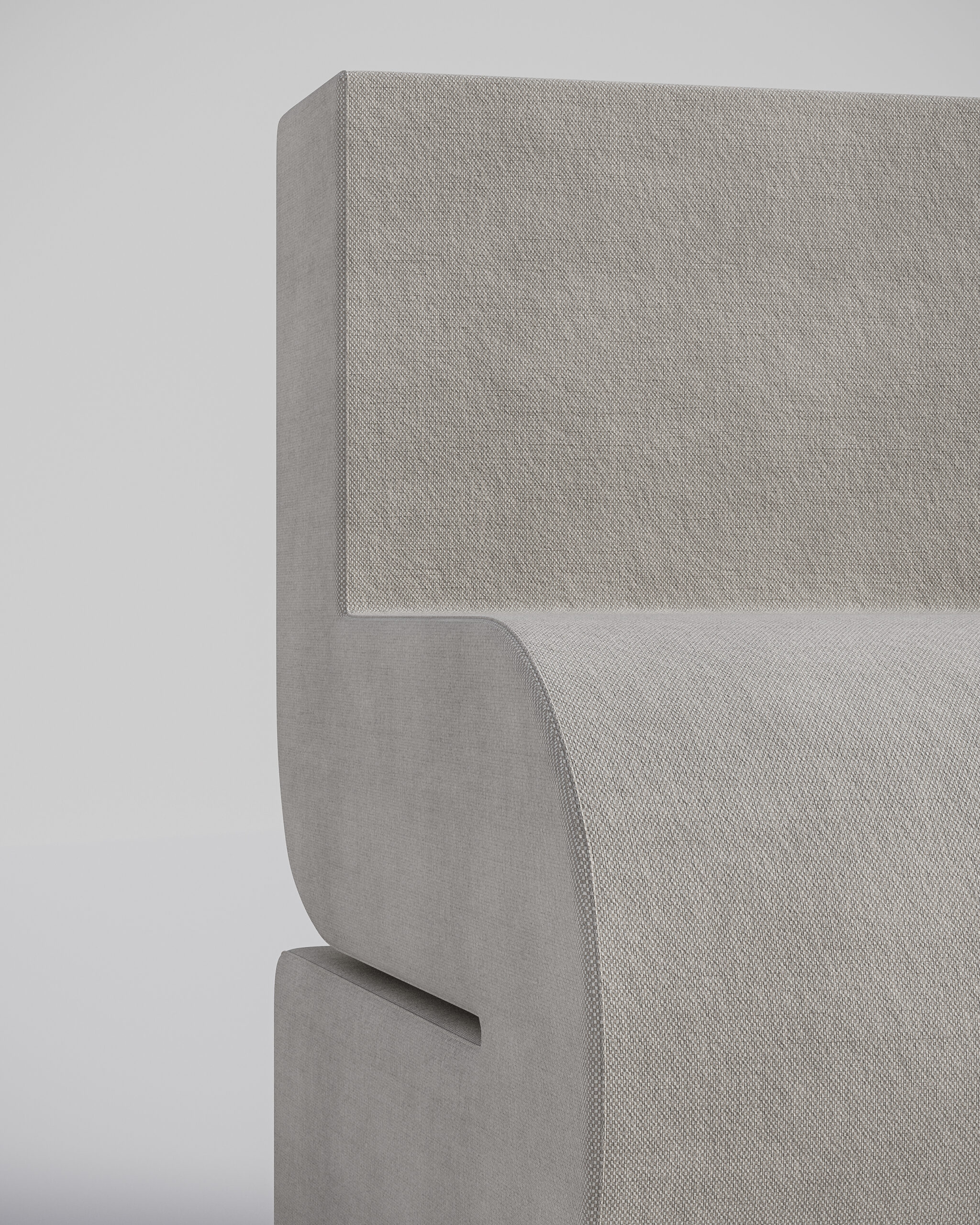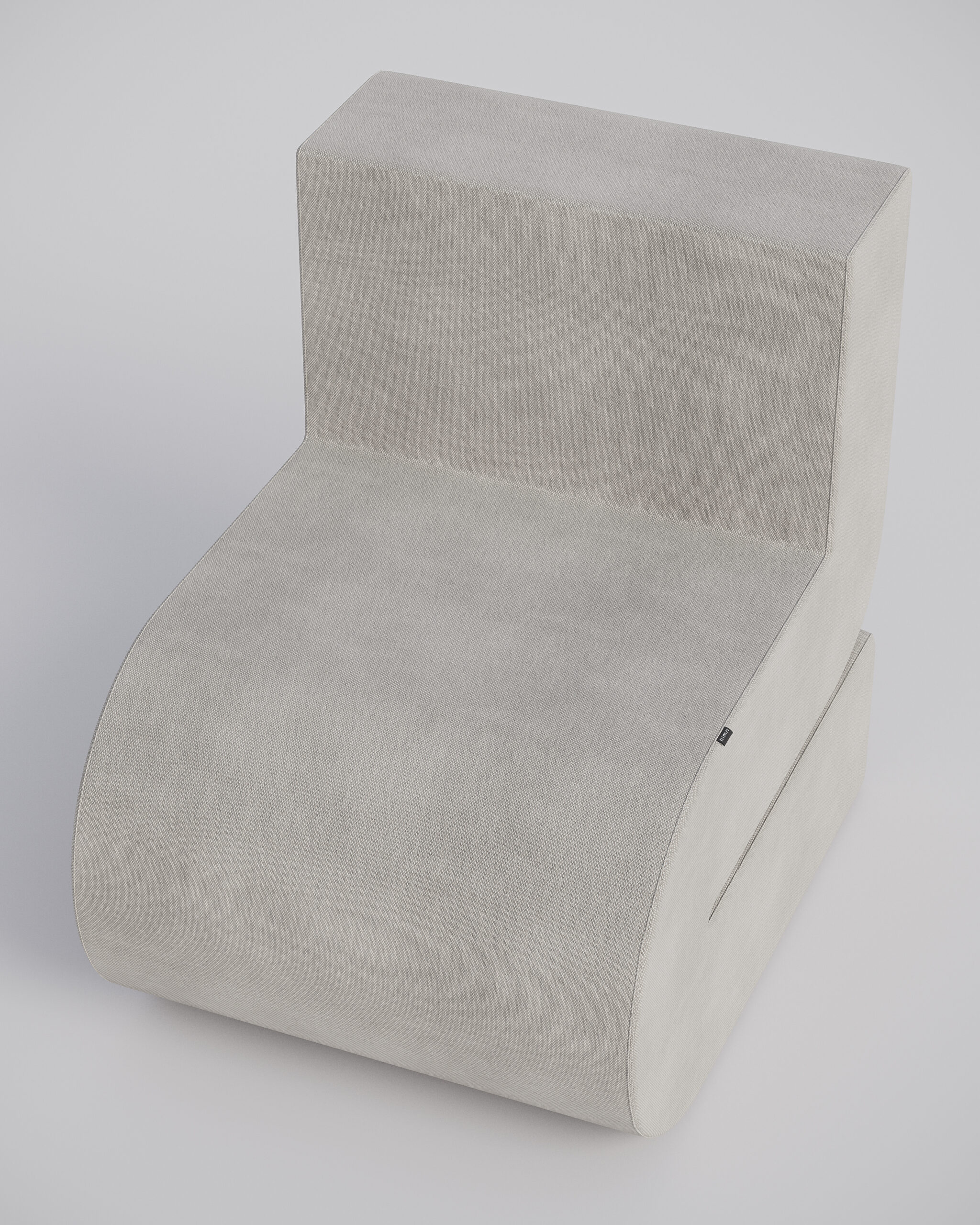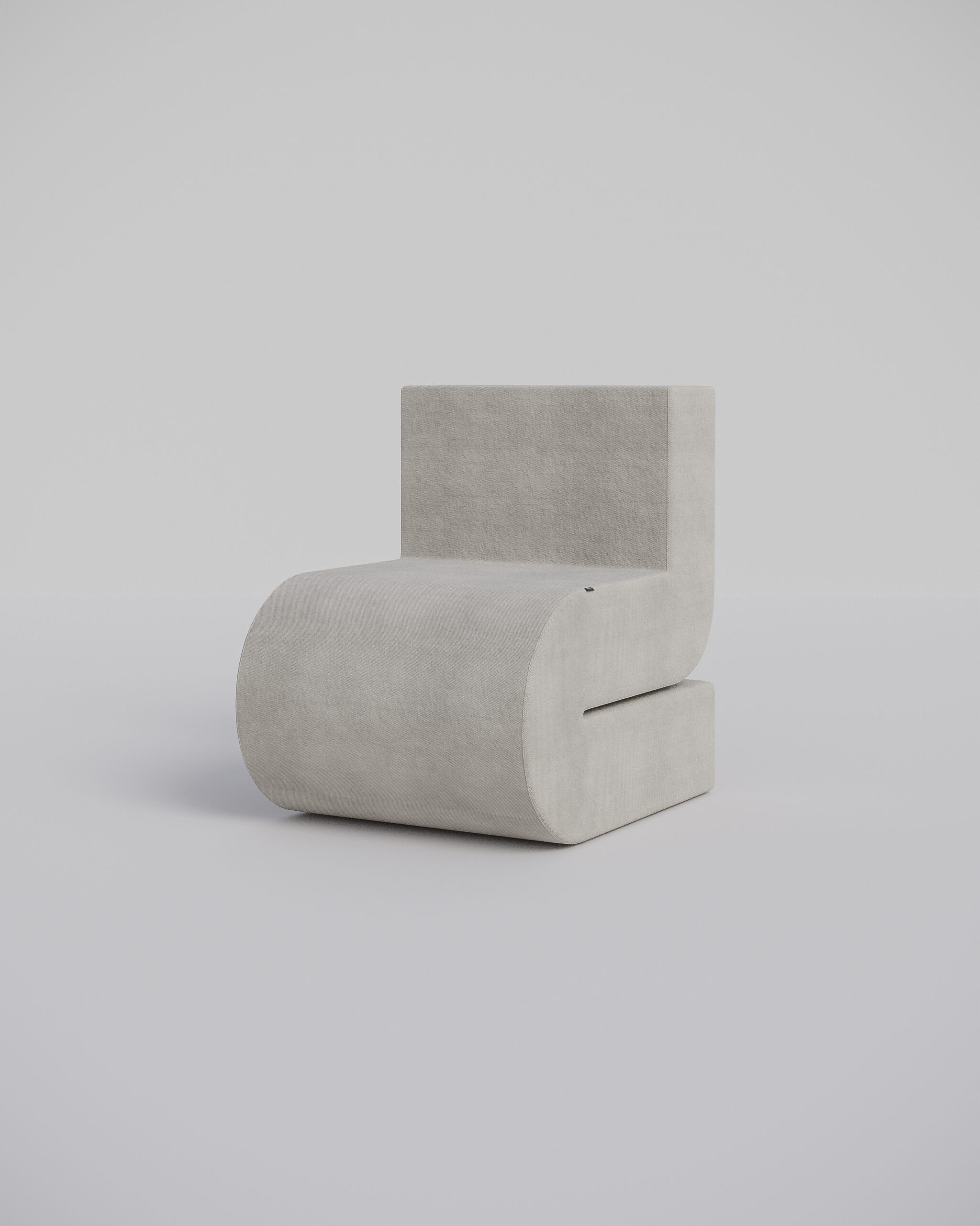 Su volumen curvo fluye sin cortes evidentes, como si la materia hubiera decidido doblarse con suavidad para crear un lugar de pausa. No hay piezas añadidas, solo continuidad. Un movimiento que sostiene y envuelve al mismo tiempo.